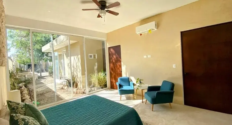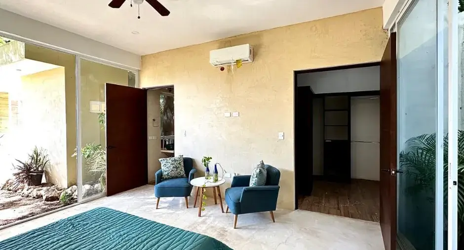 Eclectic house for sale in Barrio de Santiago. The property is a one storey fully restored residence that has a living room, a dining room and an open kitchen with a great view to the pool, a laundry room, a half bathroom 2 bedrooms, 2 full bathrooms and a spacious backyard with lots of trees and a swimming pool. The house is very open, it has great natural lightning, great cross ventilation and outstanding views to the green areas. The property includes air conditioners, ceiling fans, an electric stove and wood cabinets in the kitchen. it is not sold furnished.