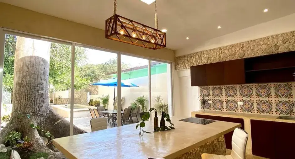 Casa de estilo ecléctico en venta en el Barrio de Santiago. La propiedad es de un piso y se encuentra totalmente remodelada. La residencia cuenta con sala, comedor y cocina con una increíble vista a la alberca, cuarto de lavado, medio baño, 2 habitaciones, 2 baños completos y un espacioso jardín con árboles y piscina de muy buen tamaño. La casa cuenta con muy buena iluminación natural, ventilación cruzada y agradables vistas a las áreas verdes. La propiedad incluye, aires acondicionados, ventiladores de techo, estufa eléctrica y gabinetes de madera en la cocina. Los muebles no están incluidos en el precio.