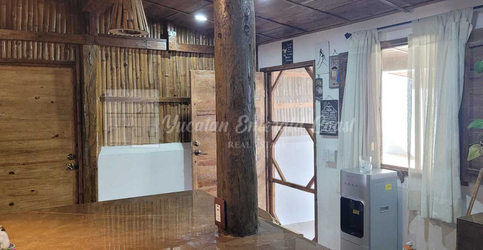 Casa de campo en venta en Dzemul, Yucatán. La propiedad se encuentra a 12 minutos de Telchac Puerto, 10 minutos de Motul y a 35 minutos de Mérida. La residencia es de 1 piso, cuenta con estacionamiento para 5 coches, terraza techada, sala, comedor, cocina, una espaciosa alacena, cuarto de lavado, medio baño, 5 habitaciones, 5 baños completos, patio y una alberca con una cascada de piedra. El inmueble cuenta con un horno maya bajo tierra diseñado espacialmente para cocinar cochinita pibil y lechón. La propiedad incluye: Un aire acondicionado inverter en cada habitación, pozo, lámpara sumergible y filtro para la alberca, 2 fosas sépticas, 2 tanques estacionarios de gas, todos los lavabos de los baños son de piedra tallados a mano por artesanos mayas, lámparas de bambu, 15 ventiladores de techo, la barra dela cocina es de porcelanato, cuenta 8 cámaras de seguridad e internet starlink.