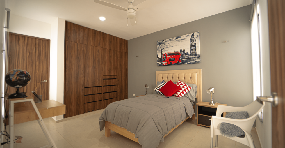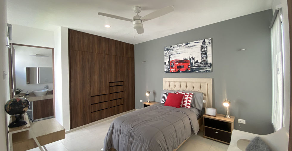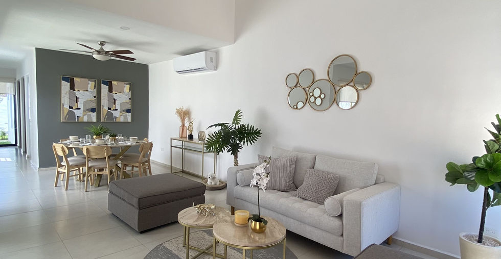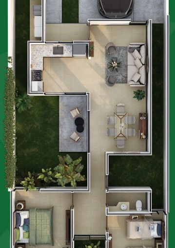 Beautiful contemporary residence for sale in Cholul. This quiet residential neighborgood is located 20 minutes away from the Historic Center, 30 minutes away from Progreso and 45 minutes away from Telchac Puerto. The property is a nice modern one storey house. It has indoor parking for 1 car, a living room, a dining room, an open kitchen, a half bathroom, a laundry room, 2 bedrooms and 2 full bathrooms a garden and a pool. The property will be finished on December 2025.